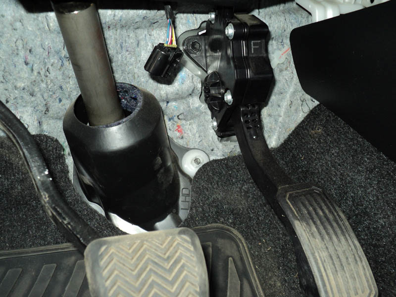 Белый провод со стороны разъема педали соединяется с чёрным сдвоенным проводом круиз-контроля.