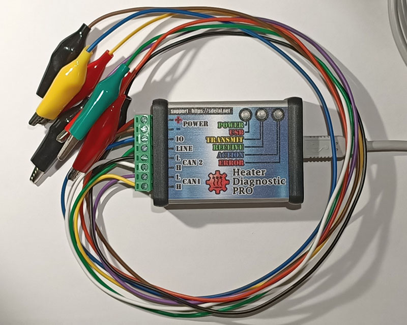 Адаптер Heater Diagnostic PRO является универсальным инструментом для диагностики и ремонта автономных отопителей. Адаптер на борту имеет два CAN, K-line и универсальный порт. Позволяет диагностировать по CAN отопители MB W639 и W906, производить кодирование. Адаптер умеет читать ошибки в старых котлах Eberspacher и читать данные через функциональную диагностику с гидроников D5, D10, D30, а так же с аиртроников с блоками wehrle. Адаптер кроме диагностических функций умеет эмулировать CAN автомобиля для запуска отопителя без борта (VAG, MB Actros, Scania, Iveco). Благодаря функции гейтвея адаптер позволяет подключать диагностическое оборудование к автономным отопителям без борта автомобиля (VAG, MB). Подробнее ознакомиться с адаптером можно здесь.