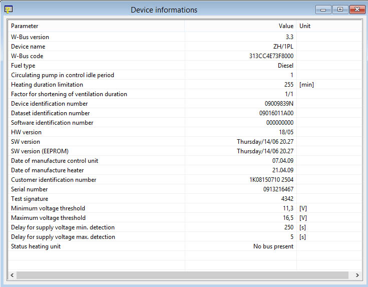 С версии ПО 2,6 появилась возможность активации w-bus для одноплатных плат догревателей VAG группы (device name - ZH/1PL).